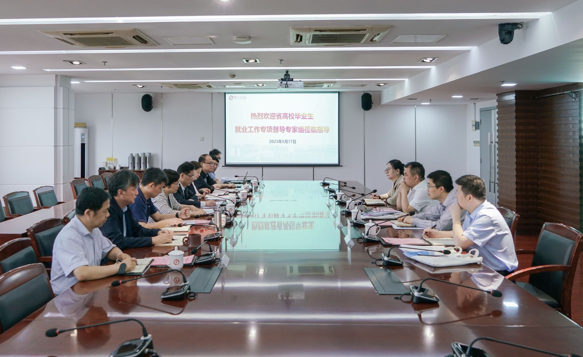 5月17日上午,江苏省教育督导委员会专项督查组一行4人,在组长国家督学、省教育厅原一级巡视员林伟的带领下来我校督查2023届毕业生就业工作。校党委副书记、副院长曹雪虹,党委常委、副院长张仰飞以及我校毕业生就业工作领导小组成员参加了汇报会及反馈会。