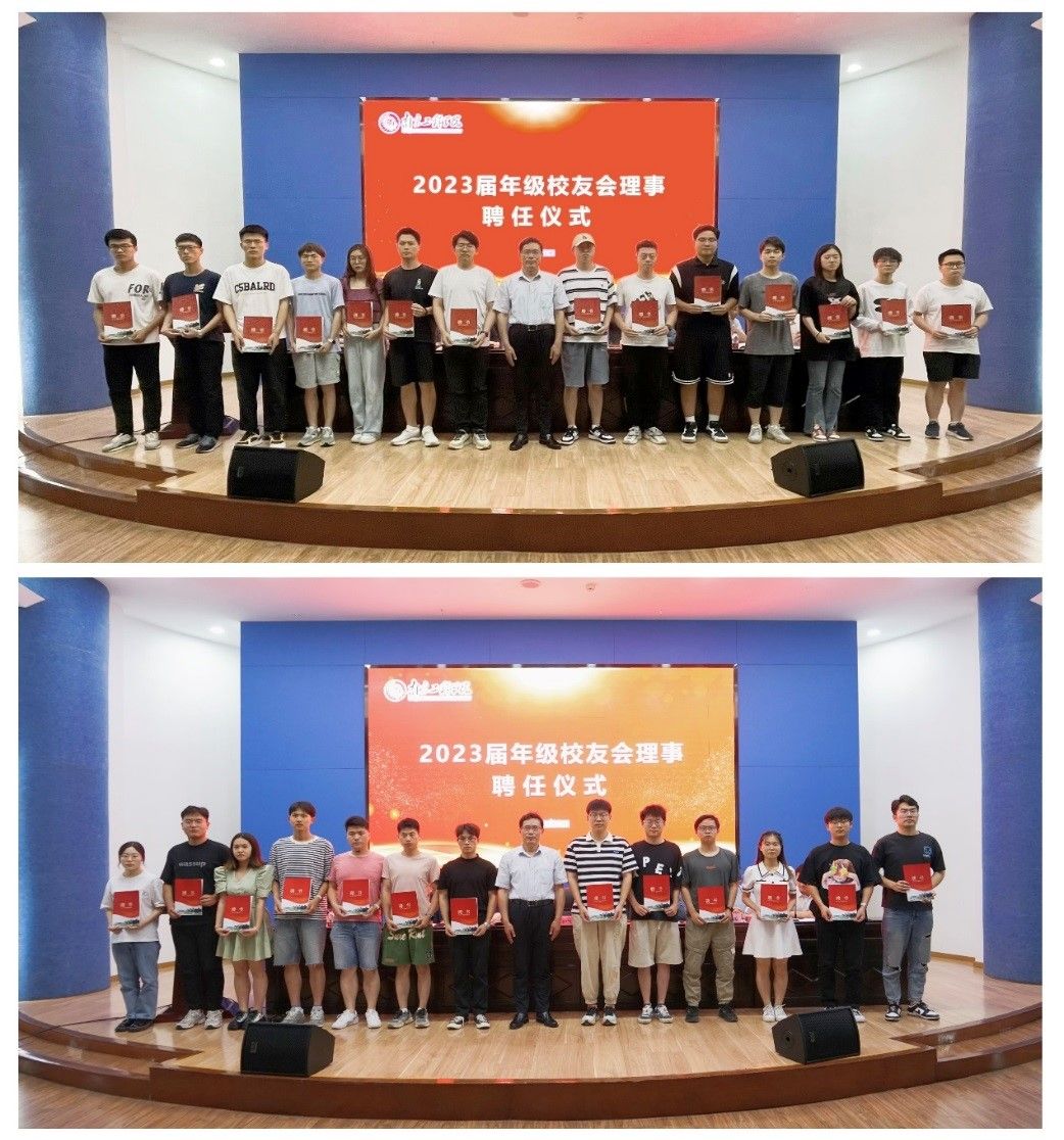 经过选举、会议表决,2023届本科生年级校友会会长由能动192班仲建文担任,副会长由国贸192班李凯等16名同学担任,秘书长由智网191班肖汉、电信191班王魏晨担任,副秘书长由视觉传达191班赵珺等19名同学担任;2023届研究生年级校友会会长由研2004班张苏南担任,副会长由研2004班黄威、研2004班齐沛锋杨昊天担任,秘书长由研2001班渠慎林、研2003班徐琪担任。张仰飞副院长为2023届年级校友会理事颁发了聘书。