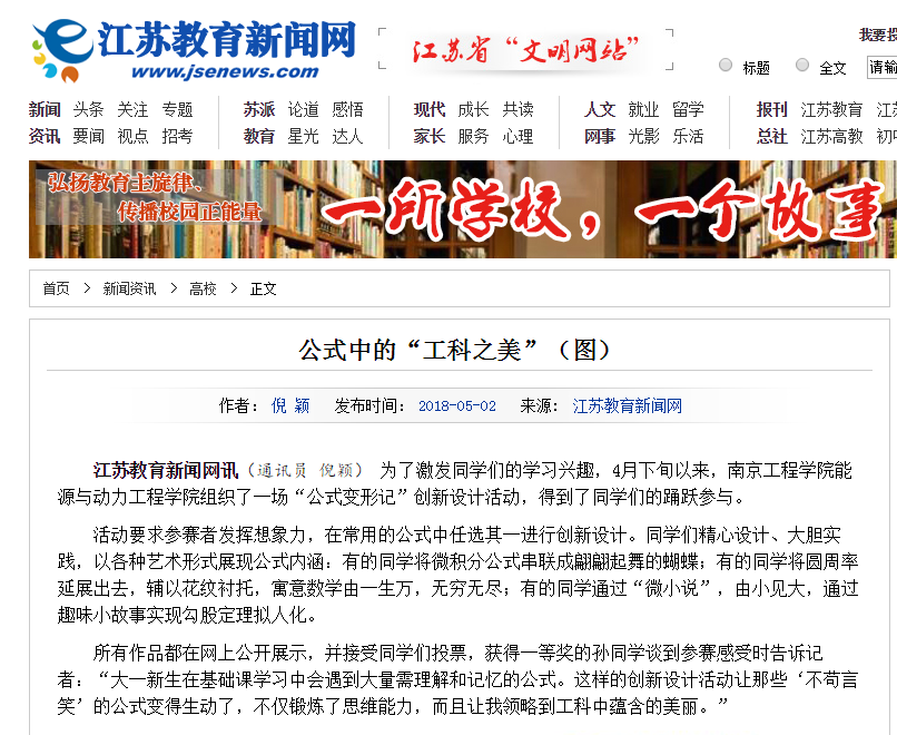 《江苏教育新闻网》:公式中的“工科之美”(图)