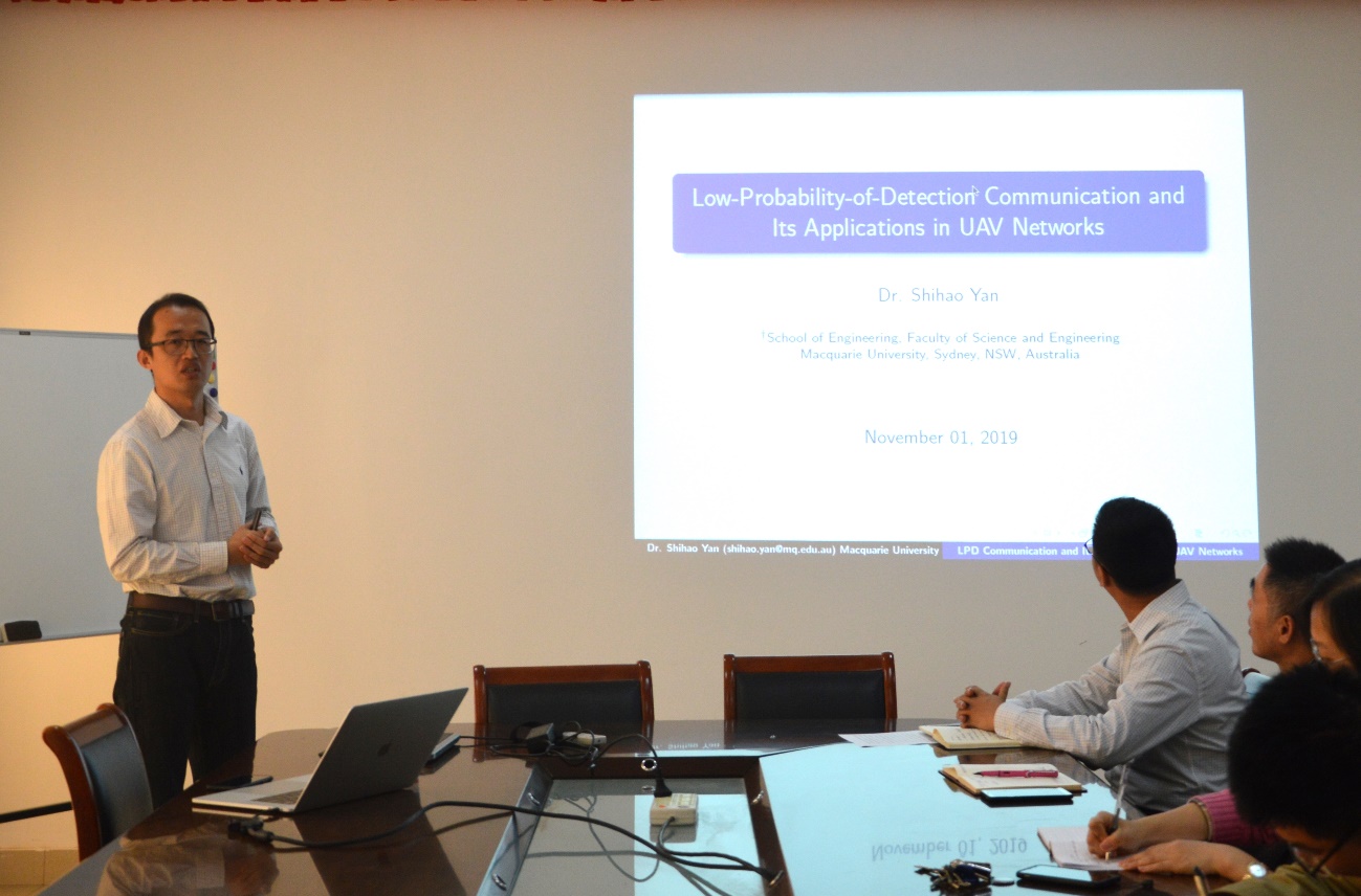 讲座伊始,澳大利亚麦考瑞大学颜世豪研究员受学院邀请做了题为“Low-Probability-of-Detection Communication and Its Applications in UAV Networks”的学术报告。报告介绍了低探测概率通信的主要特点,阐述了如何确定无人机进行低探测概率通信的最佳发射功率、高度和轨迹,并指出了低探测概率通信系统设计所面临的关键挑战以及未来的研究方向。该院刘扬老师介绍了气动阀门智能定位器的功能、应用及研发现状,并对样机设计方案、系统关键技术进行了重点说明。曾文浩老师围绕非侵入式负荷监测技术,对其应用背景、技术特征和研发前景进行了详细介绍。“通过交流,拓展了前沿知识,也加强了同事间的交流,增强了科研氛围。”现场教师表示受益匪浅。