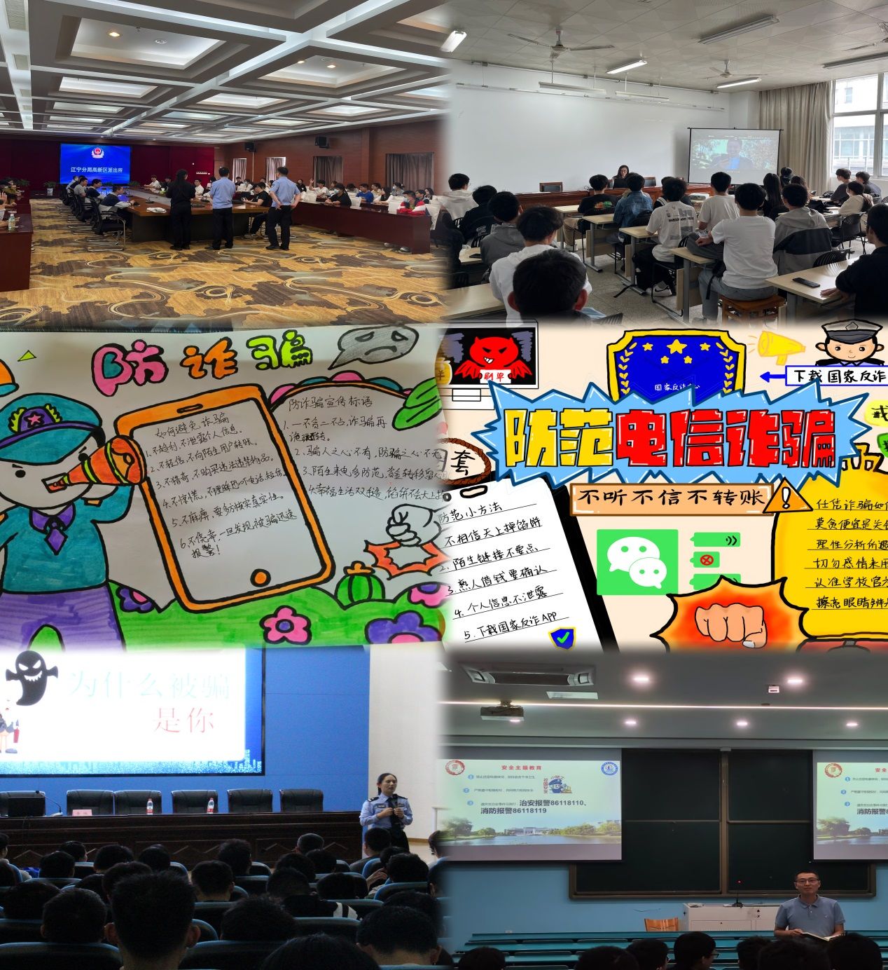 学院特邀高新区派出所李琳警官赴我校图书馆报告厅开展“防范电信网络诈骗暨安全教育”专题讲座。李琳警官结合自身多年工作经验,通过真实案例,深入浅出地分析了电信诈骗的常见方式与特征语言,揭露了电信网络诈骗团伙的组织构架、作案流程等幕后真相,呼吁同学们在日常学习生活中要提高警惕,牢记“要钱不给,给钱不要”,做到不贪图小便宜、不耍小聪明,凡涉及金钱交易事宜定要慎之又慎;学院积极开展“反诈暨安全教育主题班会”,将防范电信网络诈骗与德育教育相融合,通过案例分析,提高学生分析和解决诈骗现象的能力;学院举办“反诈暨安全教育主题月”短视频以及手抄报设计大赛,同学们以自身独特的视角创作出生动形象、寓意深刻的反诈绘画,内容丰富、形式多样;班主任、辅导员及时检查同学们“反诈app”的下载情况,确保100%的安装率,从根源处切断电信网络诈骗向凯发和学生渗透的渠道;选拔2名具备坚实反诈意识和扎实反诈知识的学生代表凯发赴高新区派出所参加线下“江宁大学城反电诈知识竞赛”,并在此次竞赛中成功闯进决赛,充分展现了材院学子的安全意识。