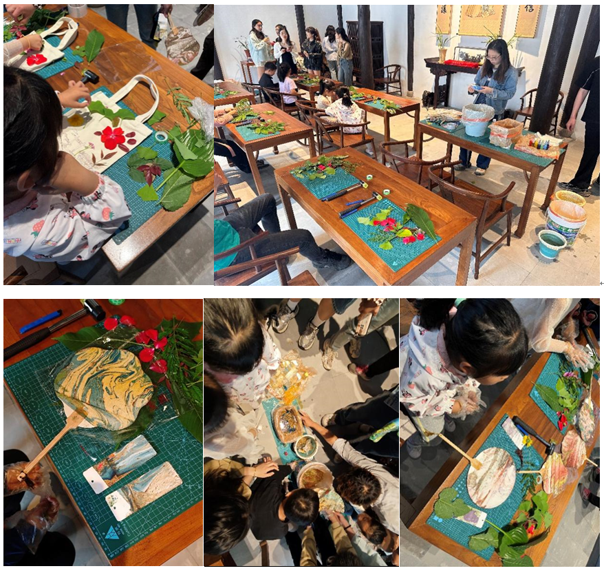 活动中,学生党员参观了由礼和堂、思承堂和树德堂组成的杨柳村古建筑群,以及村内同庆桥、牌坊、洪水楼、北岸上码头等重要历史遗存和由旧民居改造成的宝藏“村咖”小馆,实地感受了在乡村振兴建设下的农村新面貌。参观后,学生党员在杨柳村的朱氏祠堂,带领杨柳湖社区儿童开展了“漂流漆漆扇/书签制作”“植物拓染手工包制作”两项非遗创意手作活动,感受中华民族传统艺术带来的魅力,支部的党员们也收获了满满的成就感。