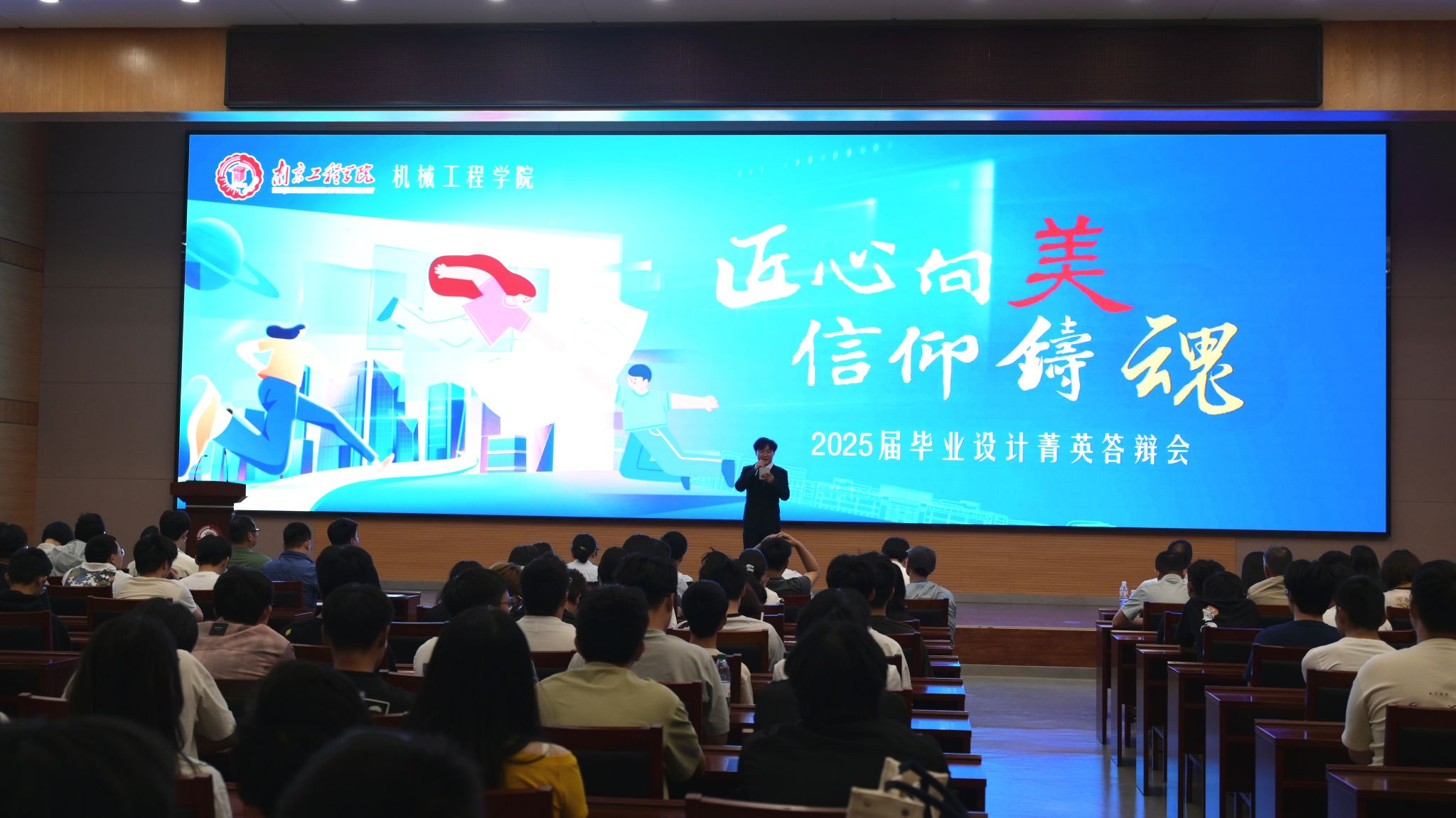 活动以“匠心向美,信仰铸魂”为主题,邀请全国劳动模范、南京二机齿轮机床有限公司副总经理吕福根和江苏恒立液压股份有限公司副总经理马艳东作为特邀嘉宾,校党委常委、副校长朱松青,学生工作处、教务处、教学质量管理与评估处、招生就业处、校工会、校团委等职能部门负责人出席活动,全体毕业生现场聆听学习。